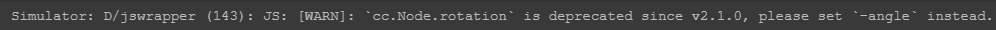 하지만 rotation 프로퍼티는 v2.1.0 이후로 추천하지 않고, angle 프로퍼티를 대신 쓰도록 권장한다는 로그가 나온다.