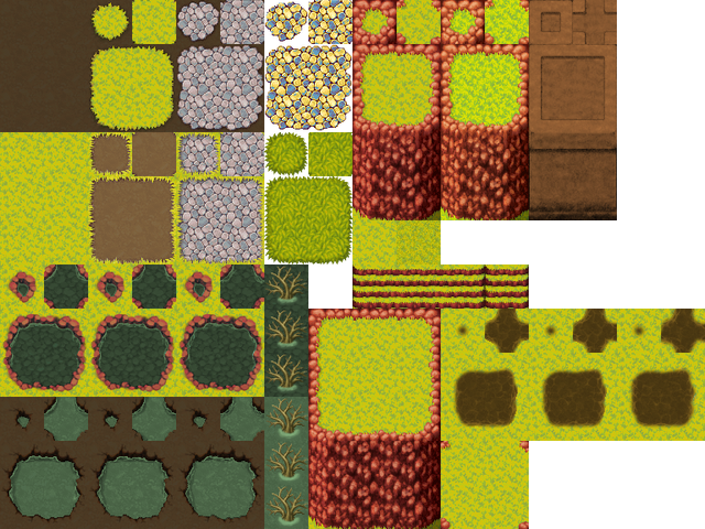 다른 컨셉의 타일셋이더라도 그림체의 통일성도 있어야 하고 타일 사이즈도 동일해야 한다.