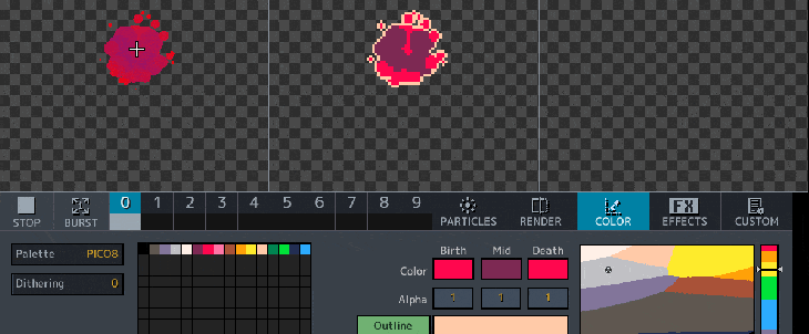 Aseprite는 픽셀 캐릭터와 애니메이션 제작에 특화된 툴이라면, 이 툴은 픽셀 이펙트를 쉽게 만들 수 있는 툴이다.