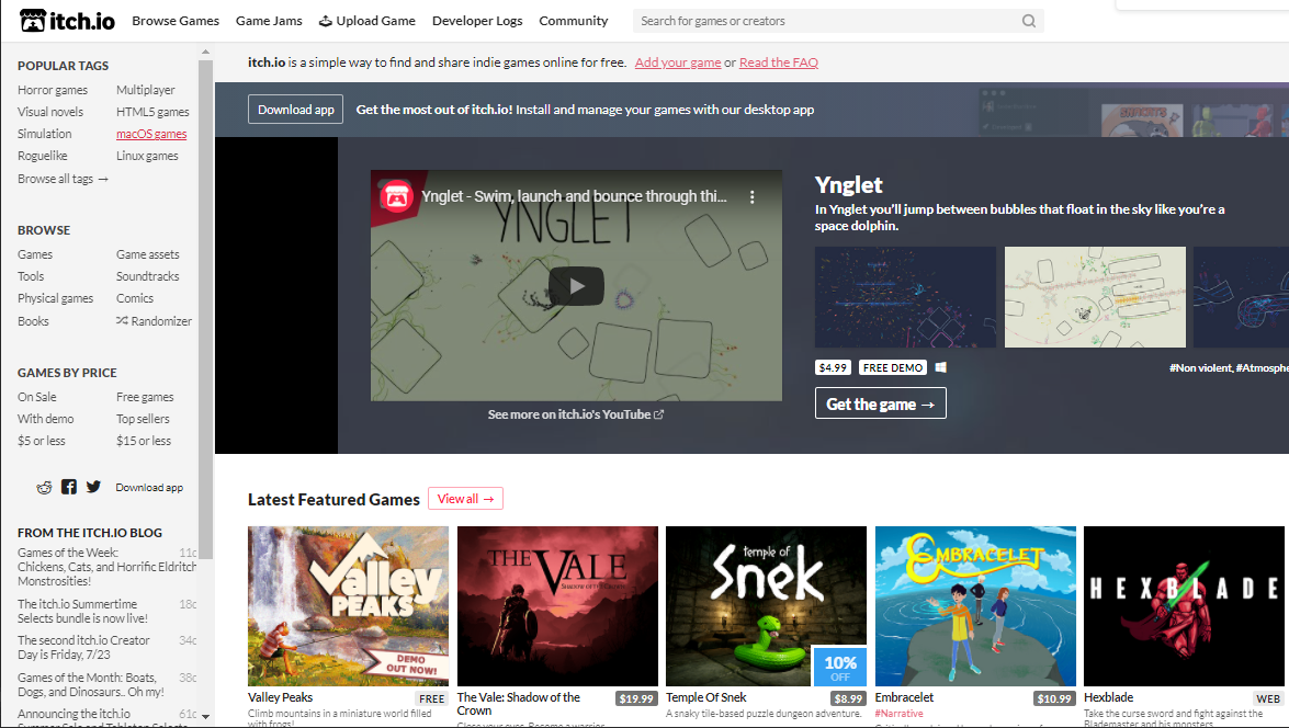 스팀과 비슷한 사이트다. 여러 인디 게임을 판매하는 사이트인데, 게임 개발에 필요한 에셋과 툴도 판매하고 있다.
