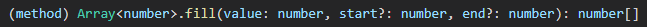 fill 함수는 배열의 일부분을 하나의 값으로 대체하는 함수다. 함수 형태도 copyWithin과 비슷하다.