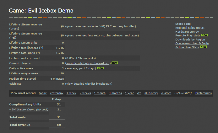 (내 사이버퇴비만도 못한 게임 데모판이 이틀만에 찍은 기록임)