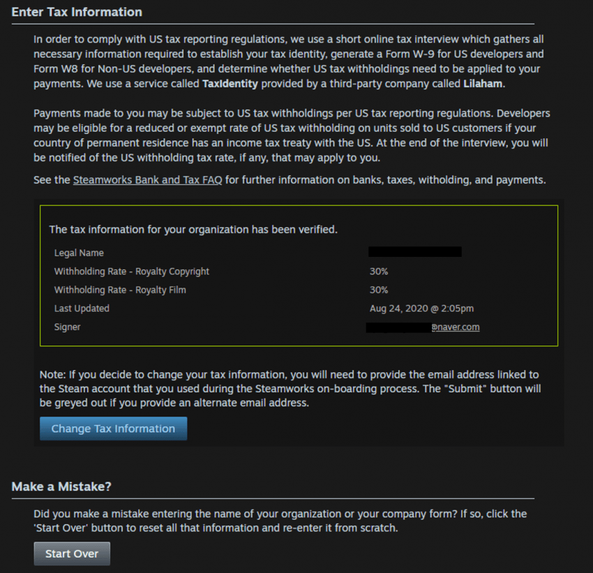 이 중에서 세무정보 기입이 스팀웍스 가입, 그리고 스팀 출시에서 가장 귀찮은 문제야