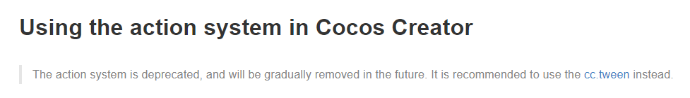 코코스 크리에이터 레퍼런스에 의하면 액션 시스템은 점진적으로 없앨 것이며 cc.tween을 권장한다고 한다.