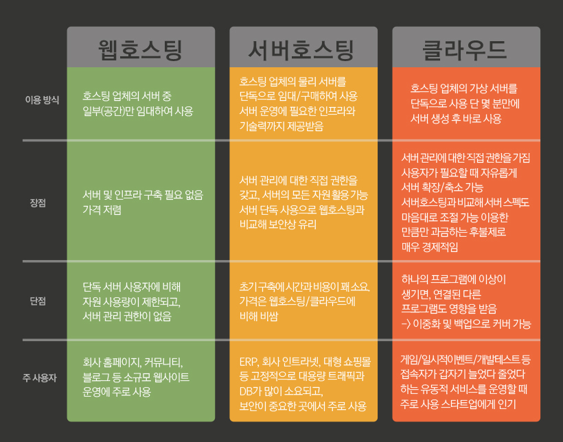 1. 웹 호스팅 vs 서버 호스팅 vs 클라우드