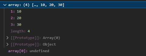 key 목록에 없는 인덱스는 undefined로 채워지기 때문에, key와 value의 개수는 3인데 변환한 배열의 길이는 4가 된다.